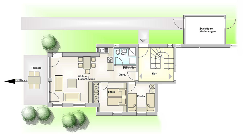 In dem Haus Am Haff gibt es nur vier Wohnungen, zwei mit direktem Blick aufs Wasser.