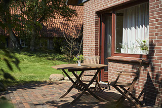 Vom Wohn-Essbereich aus treten Sie direkt auf die windgeschützte großzügige Terrasse und können gemütlich in der Sonne frühstücken.