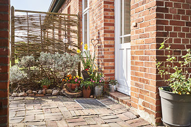 Vom Wohn-Essbereich oder dem Wintergarten aus treten Sie direkt auf die windgeschützte Terrasse und können gemütlich in der Sonne frühstücken.