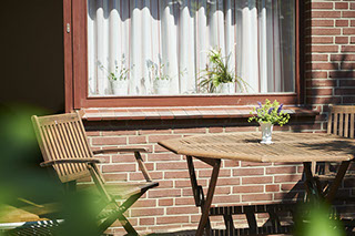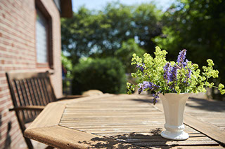 Vom Wohn-Essbereich aus treten Sie direkt auf die windgeschützte großzügige Terrasse und können gemütlich in der Sonne frühstücken.